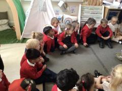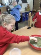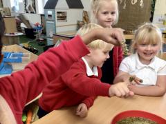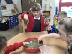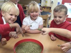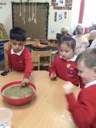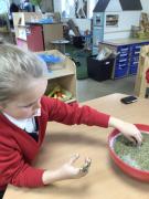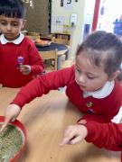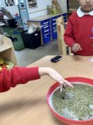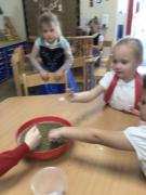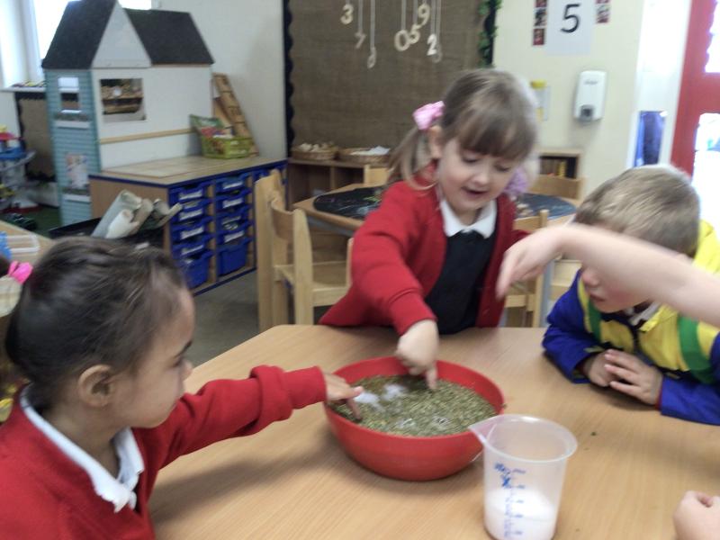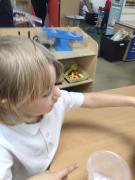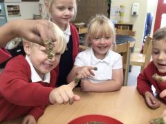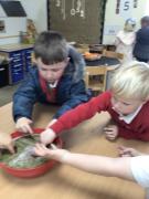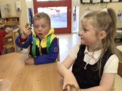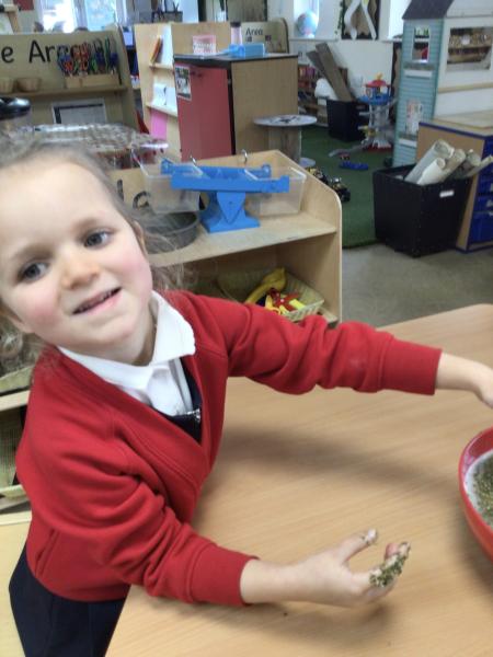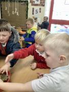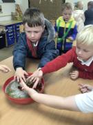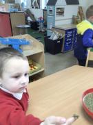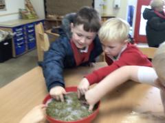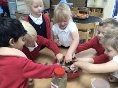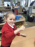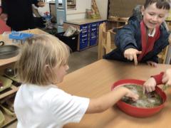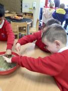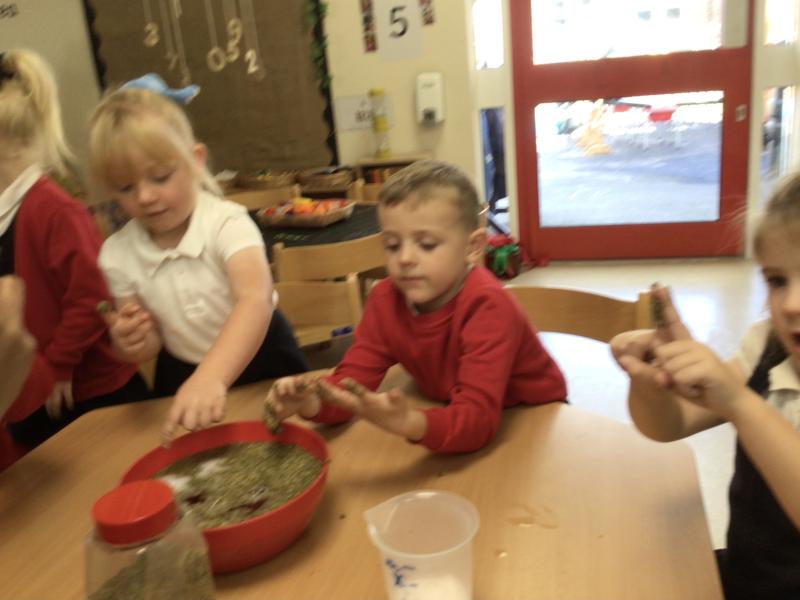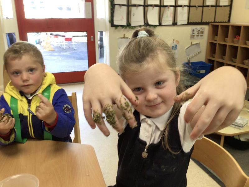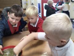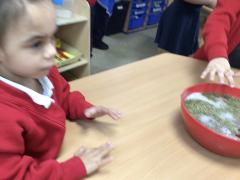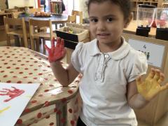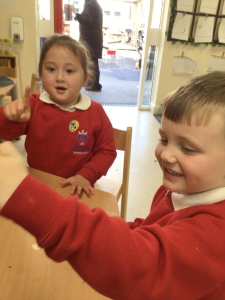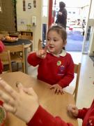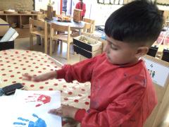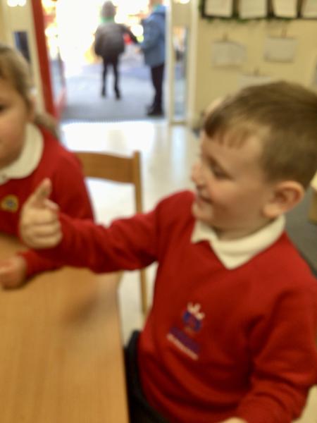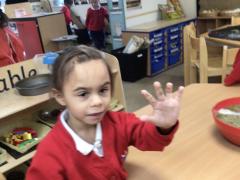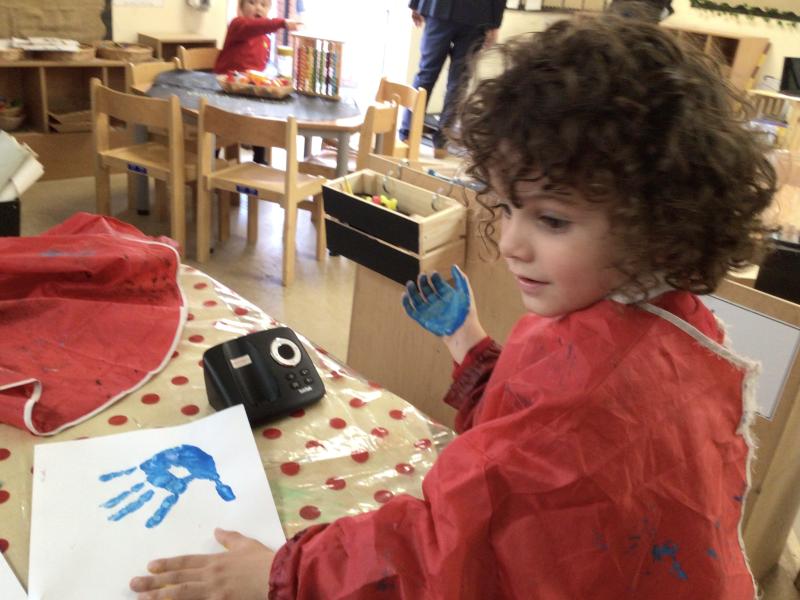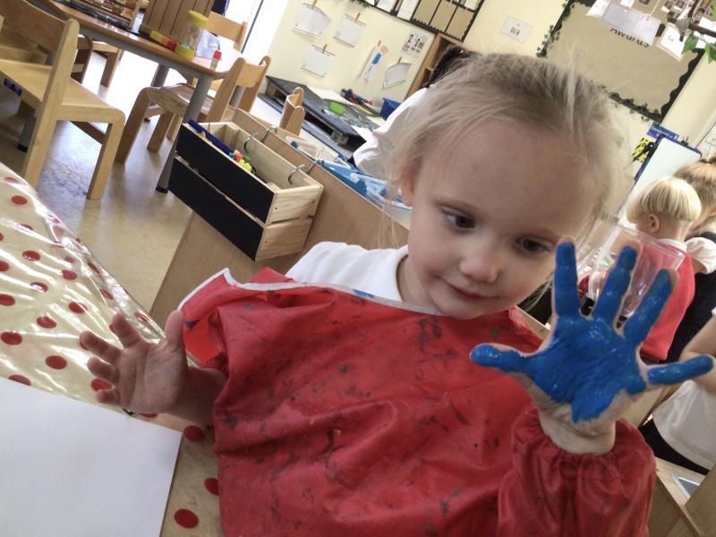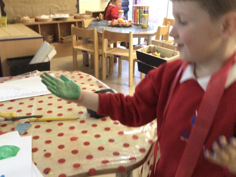 The children have been using paint to make handprints as we are going to measure all of the handprints to find out who has the biggest and who has the smallest hands in our class.