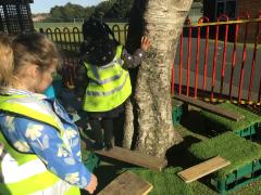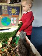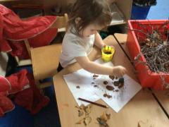 This term the Pre-School children have started to look at the seasonal changes from Summer to Autumn. The children have explored different leaves, fir cones, conkers and acorns then looked at pumpkins. The pumpkins were made into bird feeders and placed in the science garden and the forest school area.