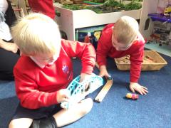 This week the children in Barlow Class have been exploring shapes. The children have explored holding shapes and used shapes to create their own pictures.