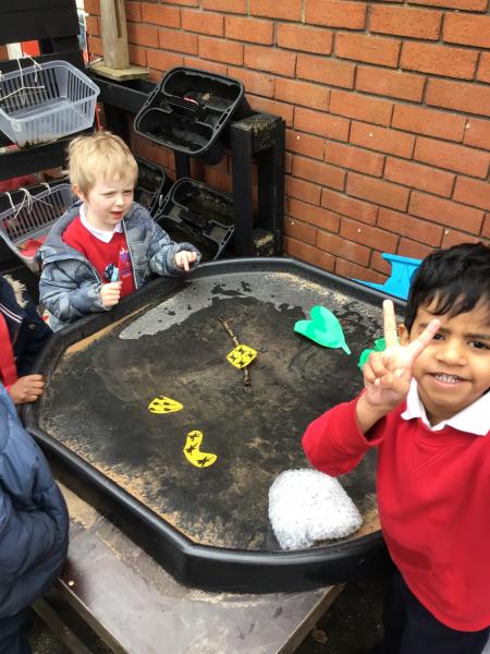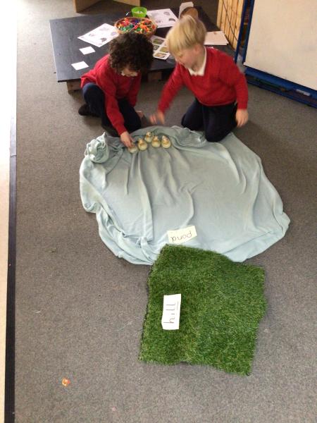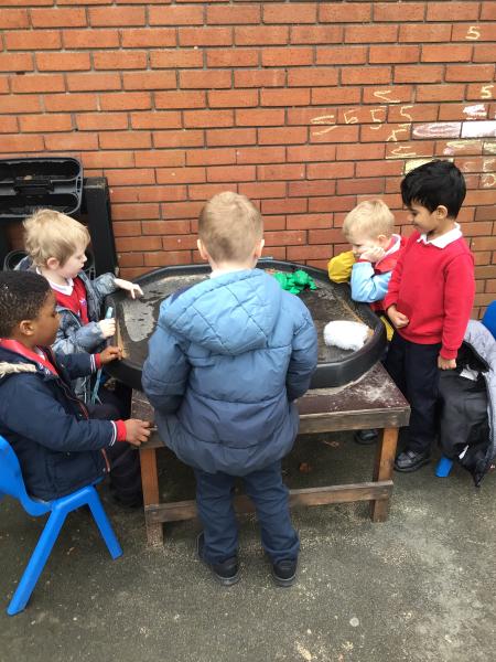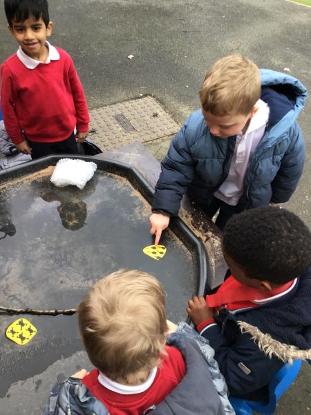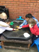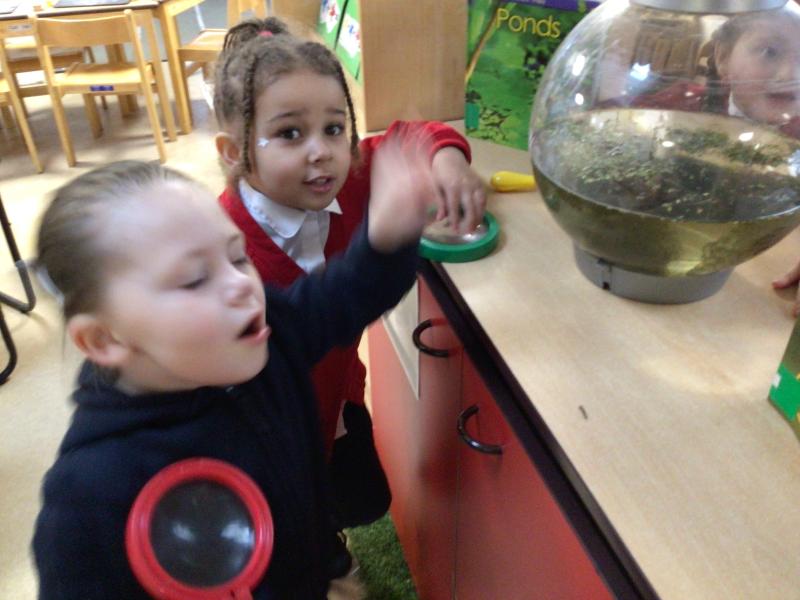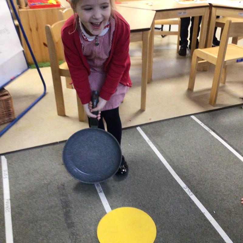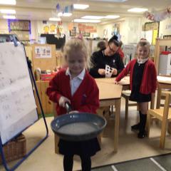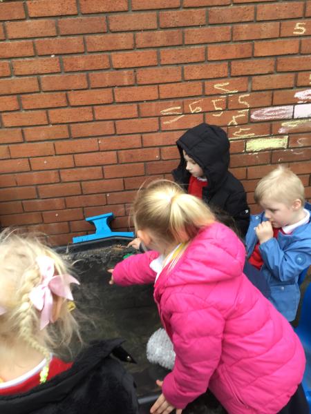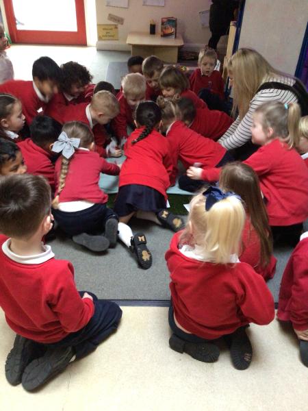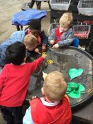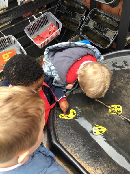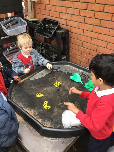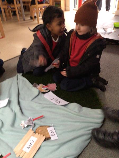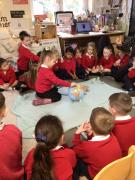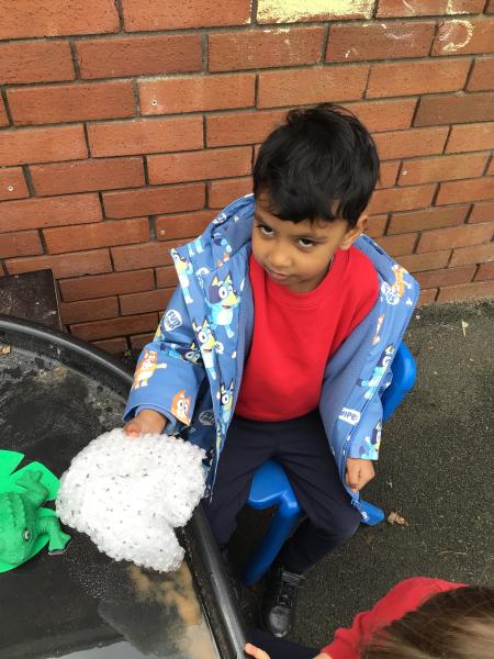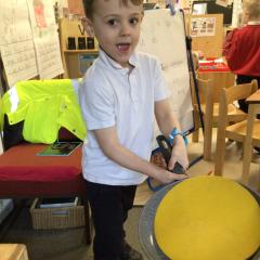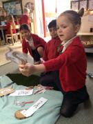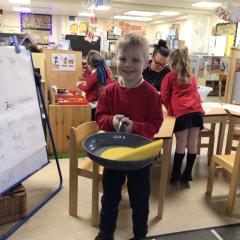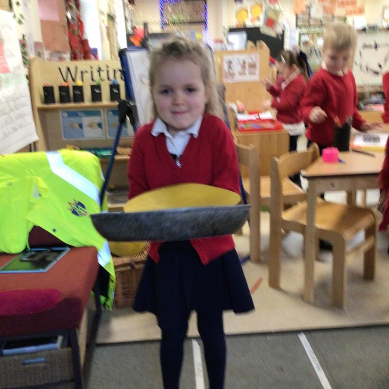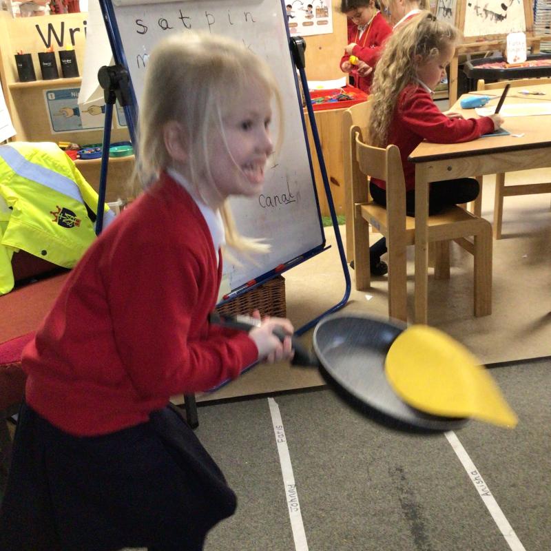 The children have been looking at the text 'Whatever Next' and have been role playing the story. The children explored the props that Baby Bear gathered to take to the moon. The children looked at what Baby Bear used as a helmet- a colander. We found a colander in our water area and explored how and what it is used for, in addition to being a helmet for Baby Bear. The children explored how the rain was able to get through the holes.