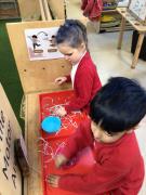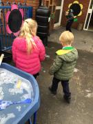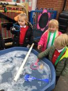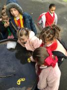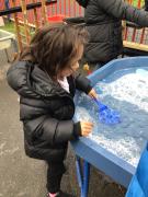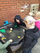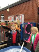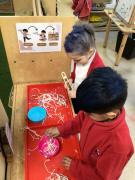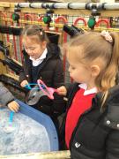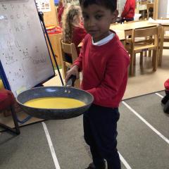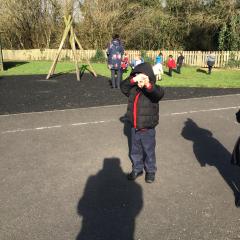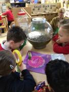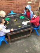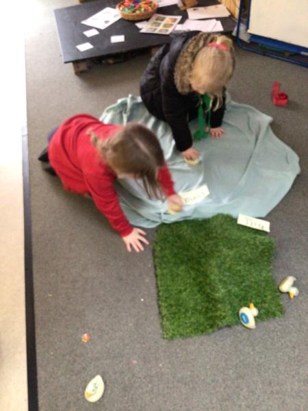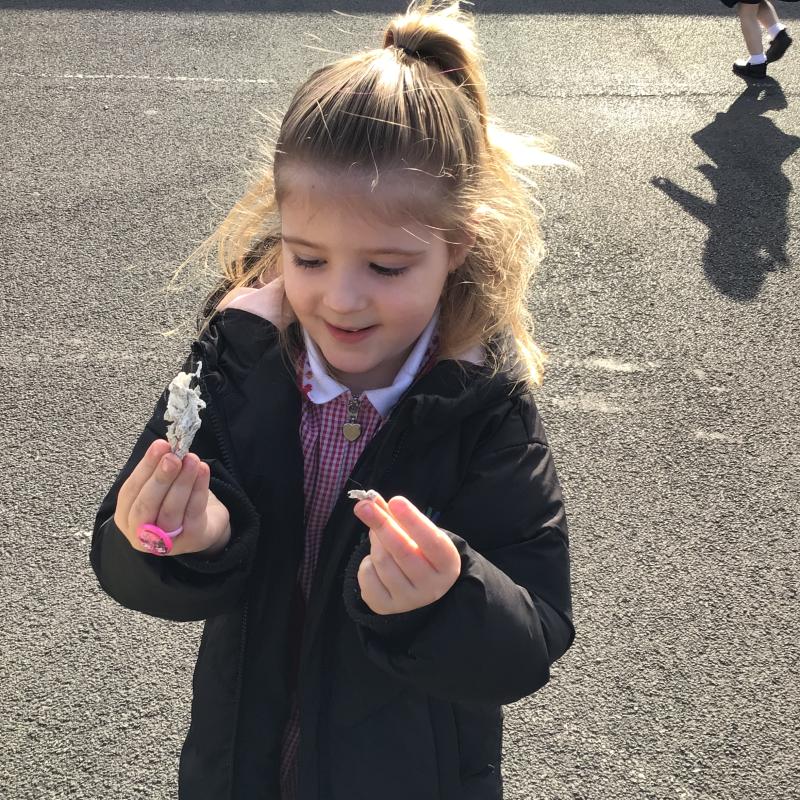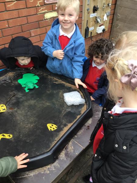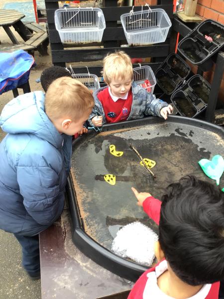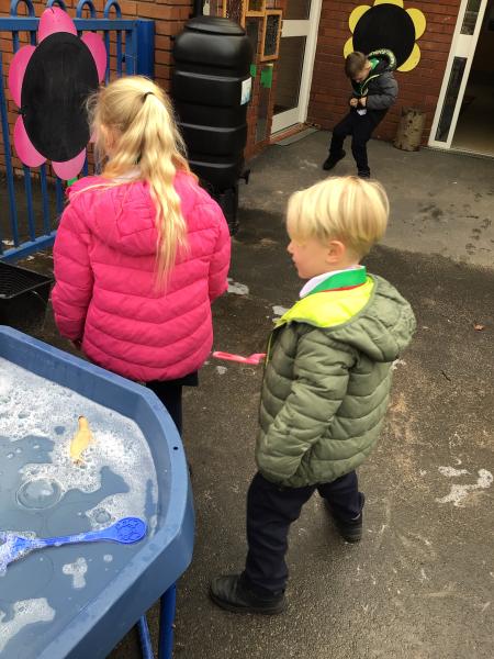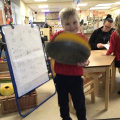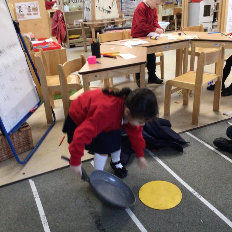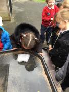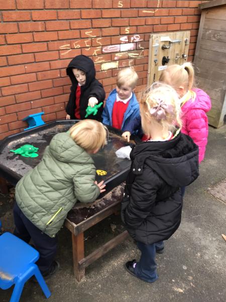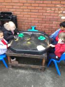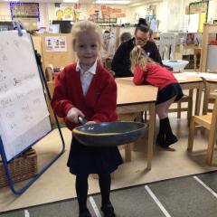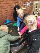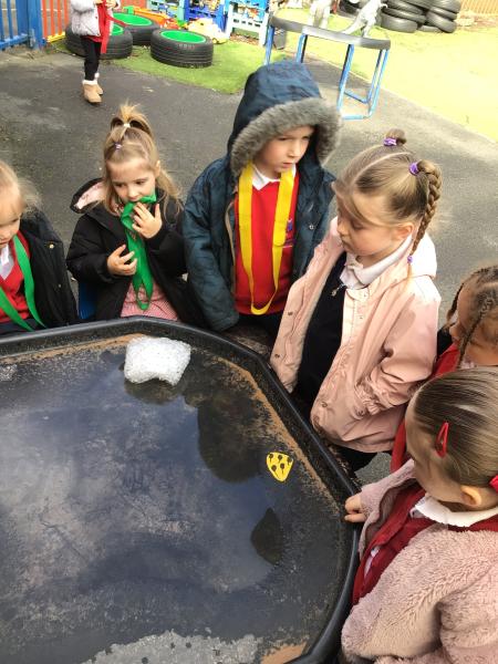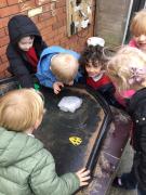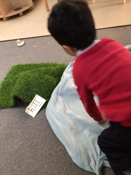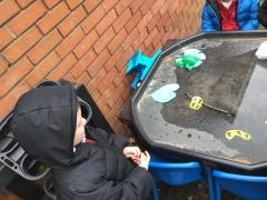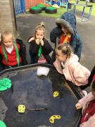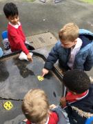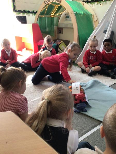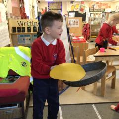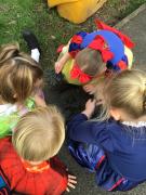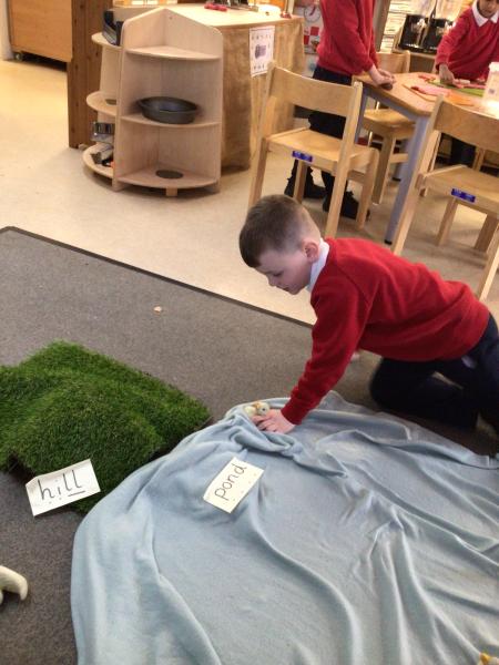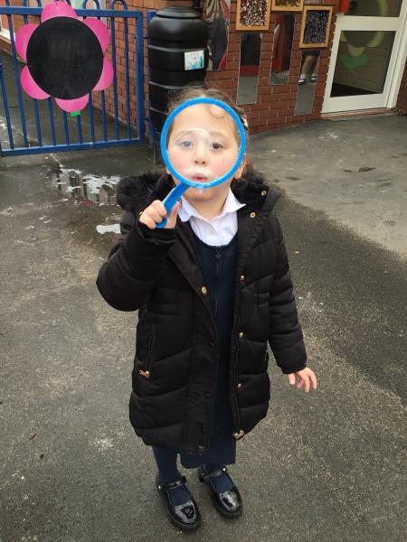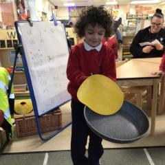 The children have been looking at the text 'Whatever Next' and have been role playing the story. The children explored the props that Baby Bear gathered to take to the moon. The children looked at what Baby Bear used as a helmet- a colander. We found a colander in our water area and explored how and what it is used for, in addition to being a helmet for Baby Bear. The children explored how the rain was able to get through the holes.