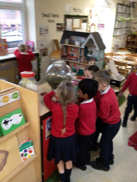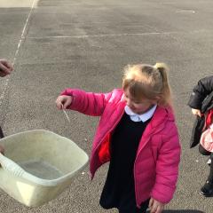 An exciting day in Beesley Class- the arrival of Frogspawn from our pond in Forest School, by Mrs Burgess
