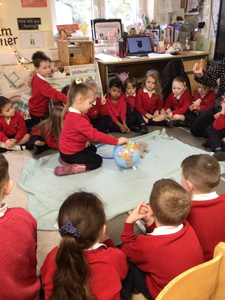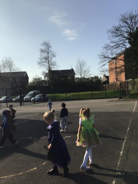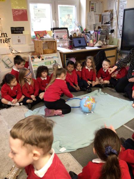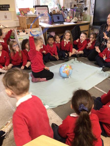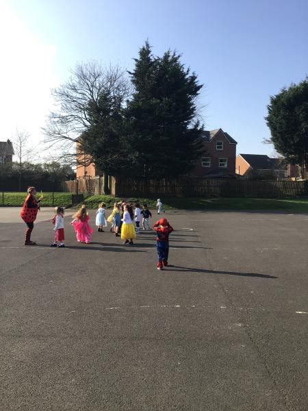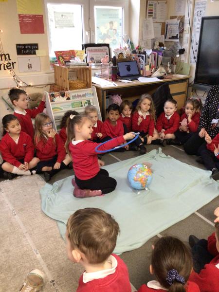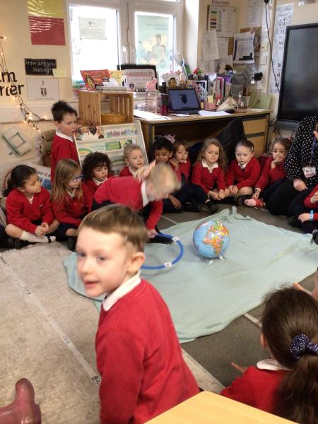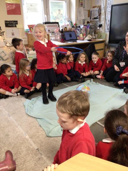 Role playing ‘Whatever Next’, by Mrs Burgess
