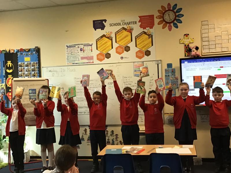 The children were visited by Caroline from the library service. She spoke to the children about her job at the library service and the children worked together to choose a new class novel. They ended up choosing Loki- a bad god's guide to causing chaos!
