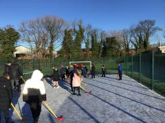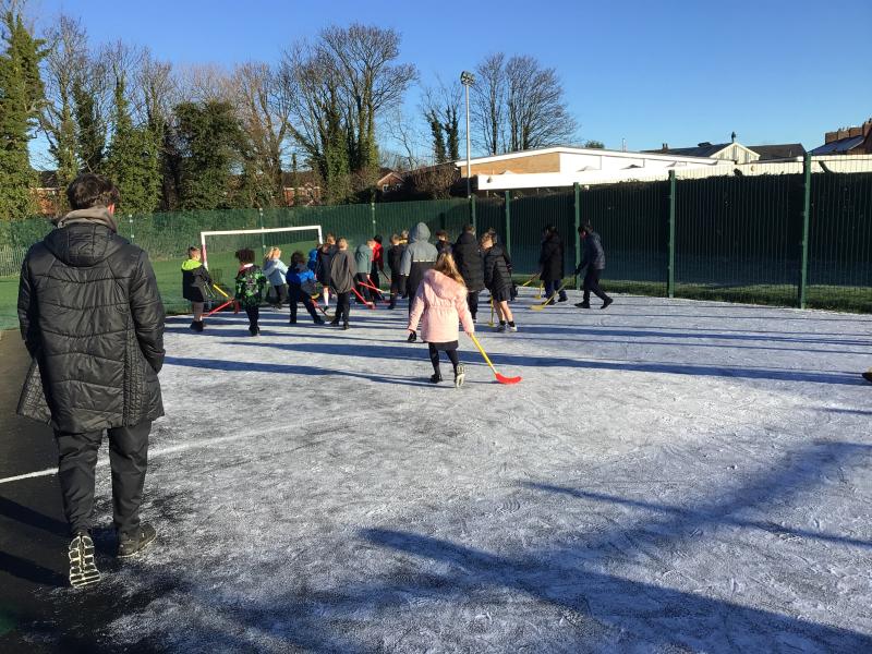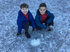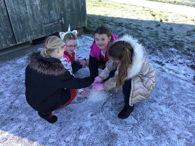 Despite the icy and cold weather, the children had fun outside.