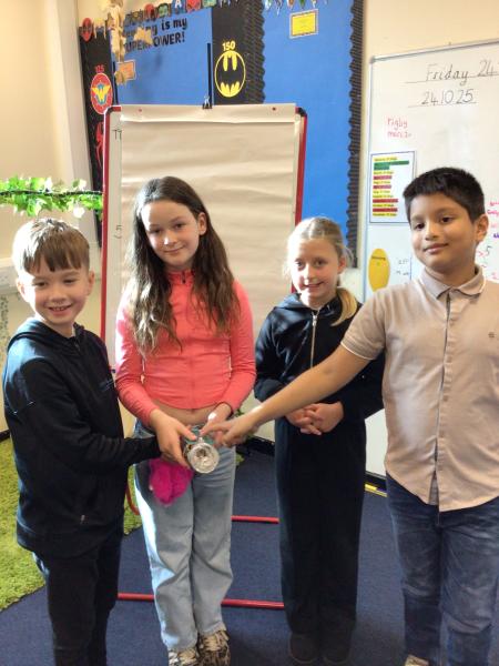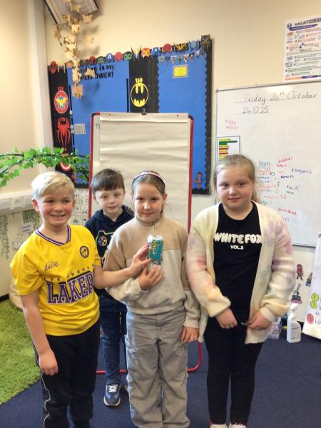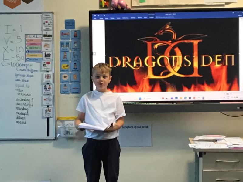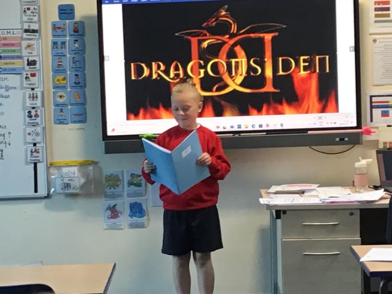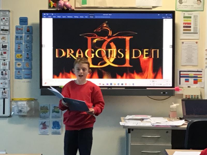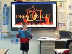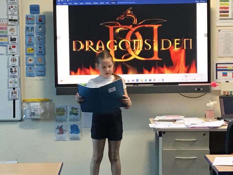 The children worked in groups to invent their own product that cannot be found in any shops. They linked it to their explanation topic in English to explain to the members of the Dragon's Den how the inventions work and to convince them to invest in their product.