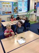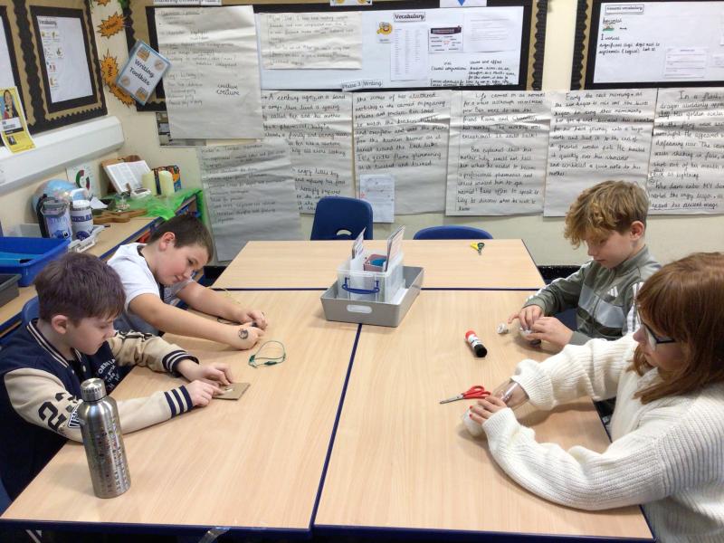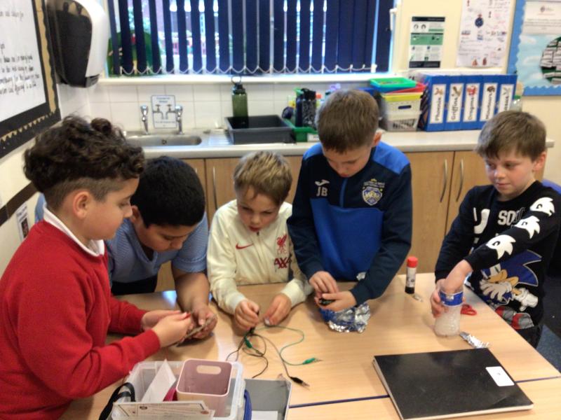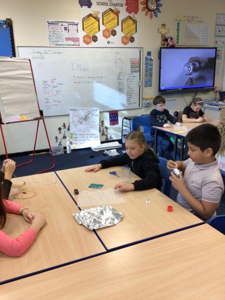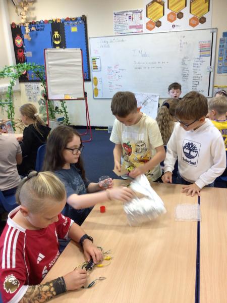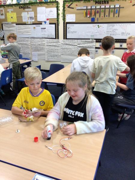 The children applied their learning from Science to create a series circuit. They also learnt how to make a switch out of card, split pins and a paperclip and then used it to make their bulb light up.