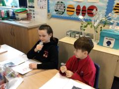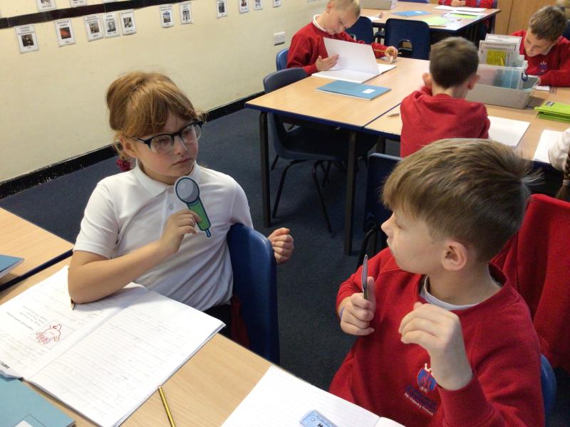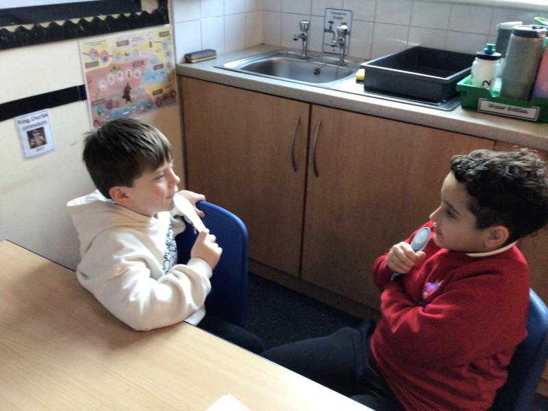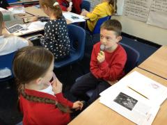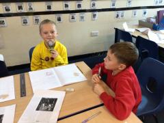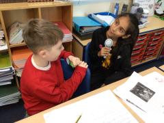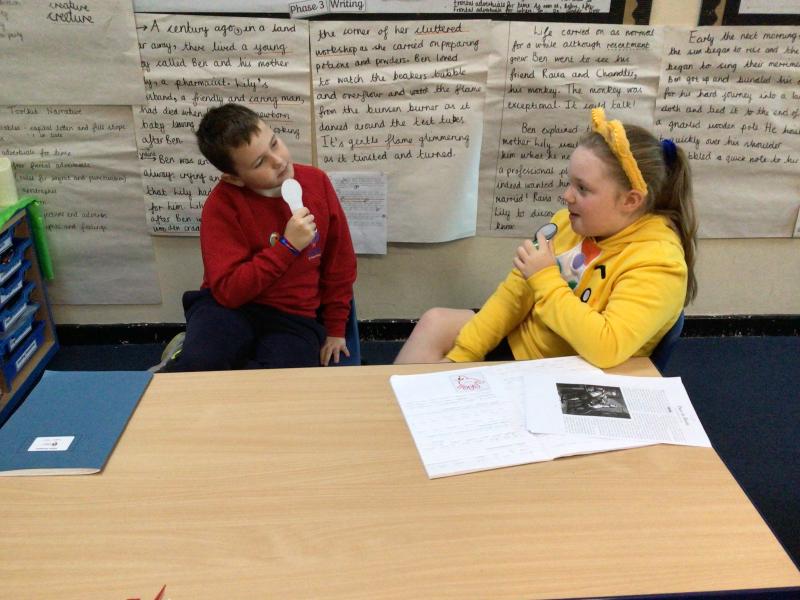 As part of their 'reading' phase of the story 'Puss In Boots' the children interviewed each other pretending to be different characters so that they understand the characters' thoughts, feeling and motives behind actions taken in the story.
