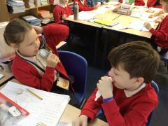 In R.E, Rigby class have been studying and comparing the stories of 'Manna in the Desert' and 'The Feeding of the 5000'. They role-played the story to help them understand the emotions the people would have been feeling when the miracle was performed.